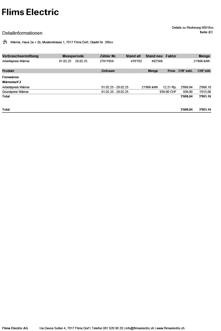 Bestehend aus Arbeits- und Grundpreis gemäss ENERGIE-Contracting Vertrag.