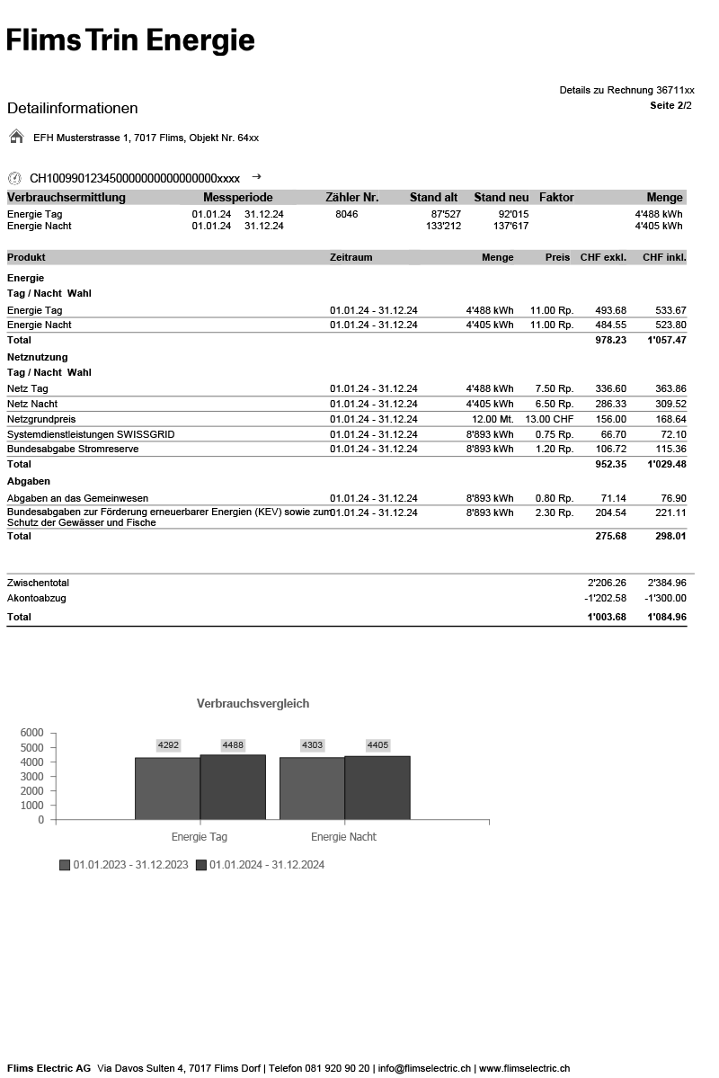 Im Dezember werden die Stromzähler abgelesen. Im Anschluss darauf erhalten Sie Ende Januar eine definitive Abrechnung Ihres Stromverbrauchs. Ihre Akontozahlung aus der Teilrechnung wird in dieser Abrechnung in Abzug gebracht.